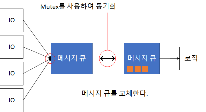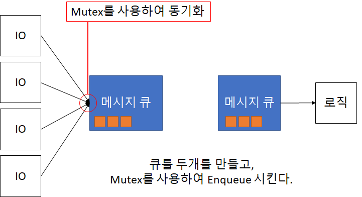 일단 큐를 두개를 만들고, 입력부분에는 Mutex를 사용하여 Enqueue 시키도록 한다.