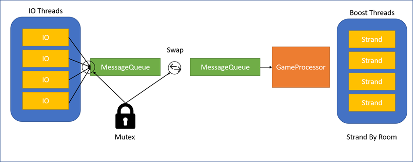 그래서 이 Room을 핸들러 단위로 하고, Strand를 사용하면 명시적인 Lock 없이 멀티스레딩 수행이 가능해진다.