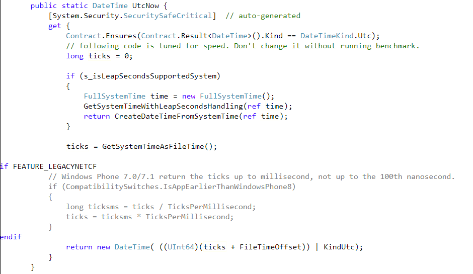 UtcNow쪽을 살펴보면 단순히 SystemTime을 가져오는 것이 전부 인것으로 보인다.